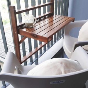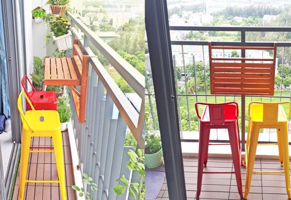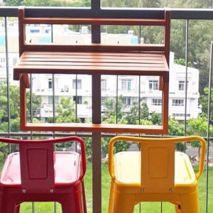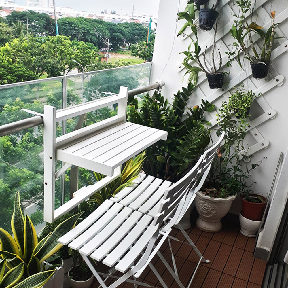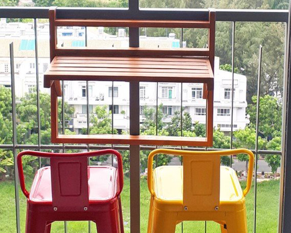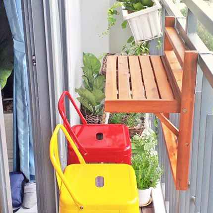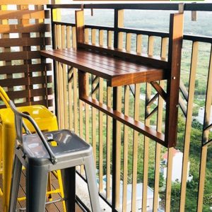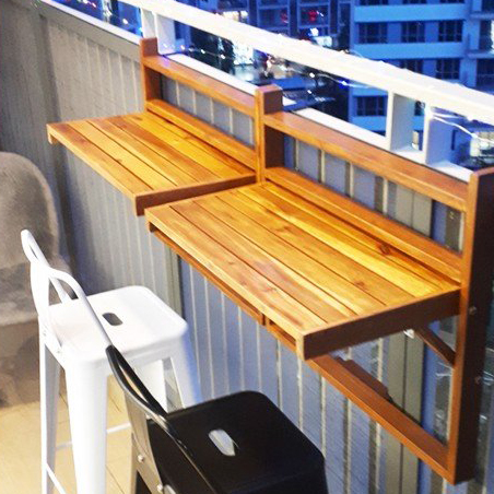 Bàn Treo Ban Công bằng gỗ Tràm siêu bền, phù hợp mọi lan can, dễ dịch chuyển, gấp gọn D60xR30cm