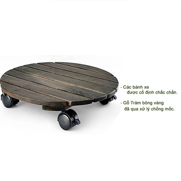 Đế lót chậu cây có bánh xe Tròn màu Đen R30cm chịu lực 80kg R30xC8cm